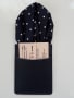 紺白のドット柄は定番イメージで
